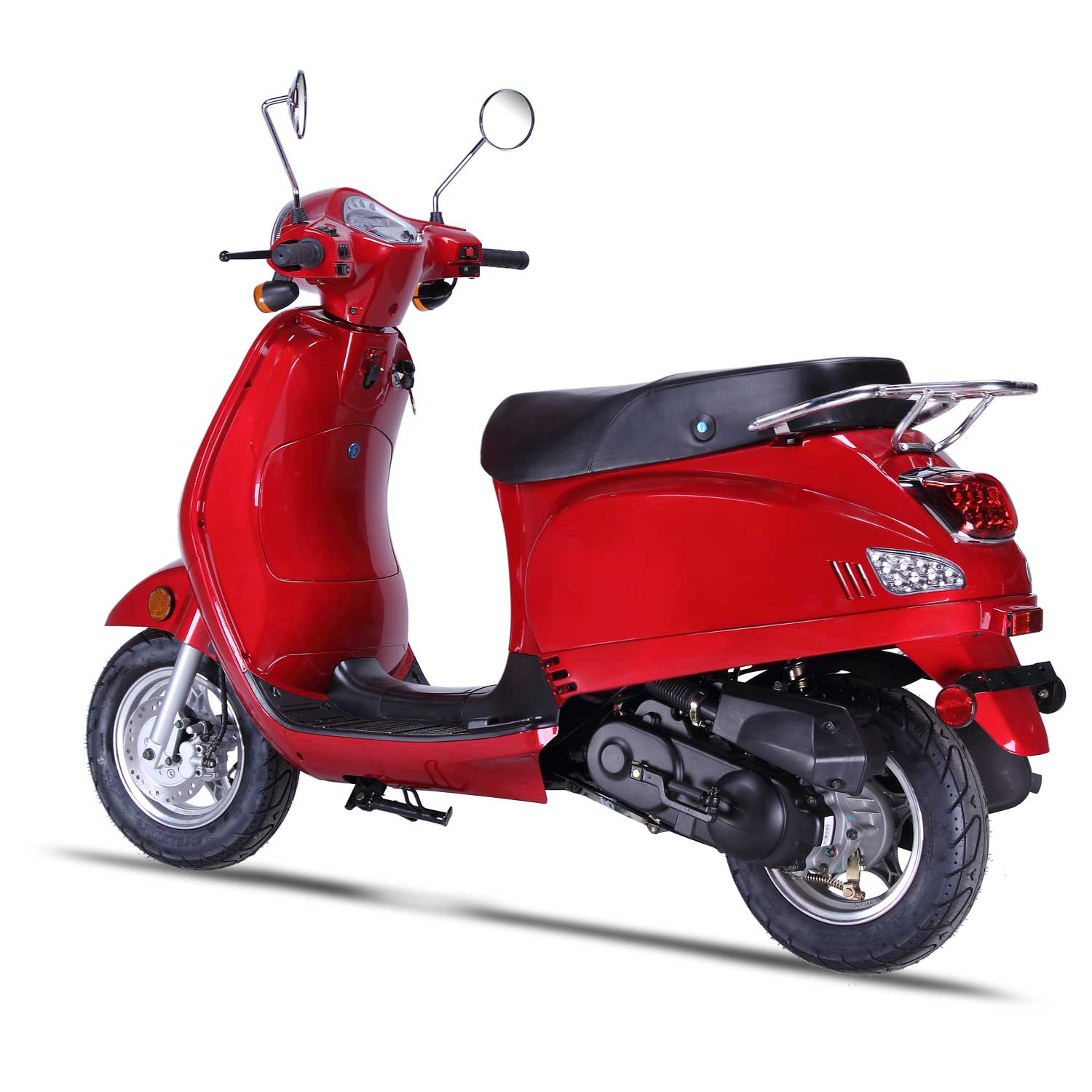 The Lucky scooter by Wolf is the hottest retro scooter in its class. You’ll be sure to get compliments on this stylish scooter that comes in 5 outrageously fun color options and is available in a 49cc or 150cc option. The Lucky has all the perks of an Italian-branded retro scooter, without the BIG price tag. This scooter is built with quality parts throughout, and drives super smooth and fast too keep you up with everyday traffic and to get you where you need to go— on time and in style! These fly off the floor fast, so be sure to visit your local Wolf dealer today!