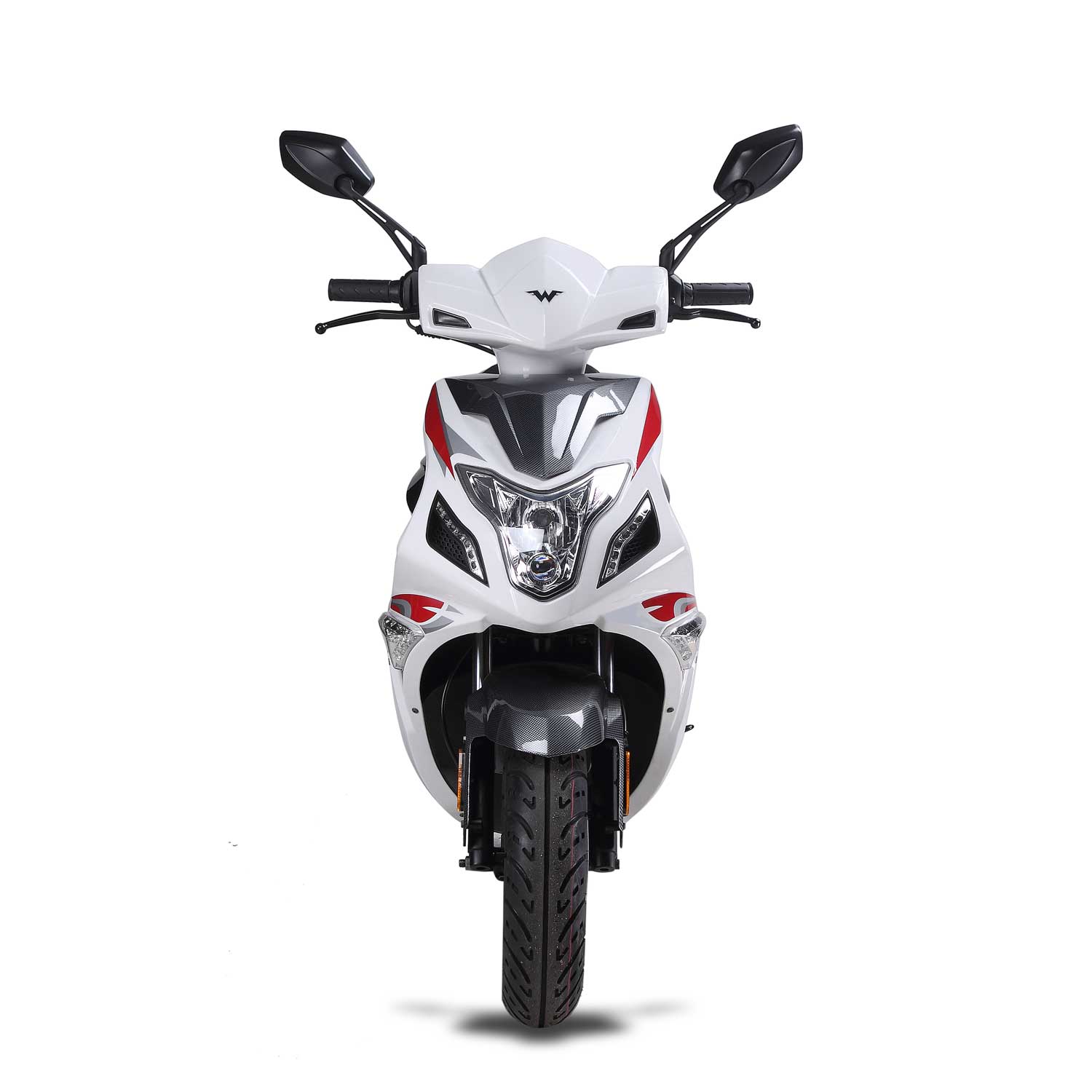 You’ve never seen anything like it before! Comes in sporty white with carbon fiber trimming, red accents on the caliper and shock, and ultra-cool graphics to complete this super sporty scooter. This model comes with an upgraded Performance Carburetor, Motobatt Battery, LED Headlights, Duro Tires, and a NGK Spark Plug! You’ll be fully covered and ready to hit the streets with this bad boy!
